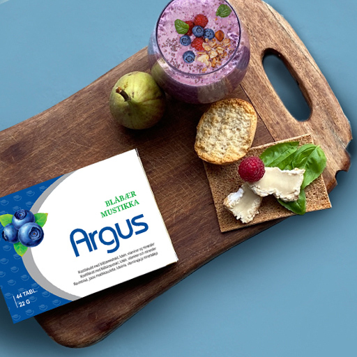 AnthocyaninerEn Argus-tablet indeholder samme mængde anthocyaniner som en håndfuld friske blåbær (20-40 bær - afhængig af størrelse).