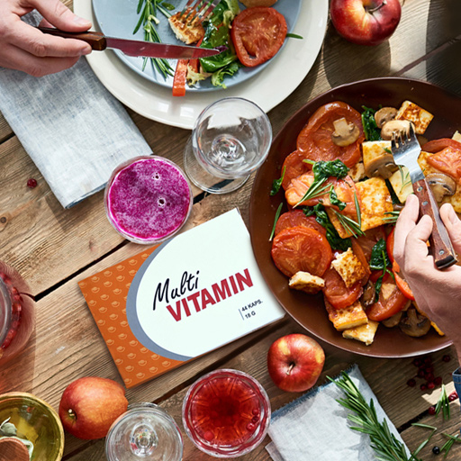 Alt i én pakkeI Multivitamin får du alle otte B-vitaminer, C- & D-vitaminer + fem mineraler.