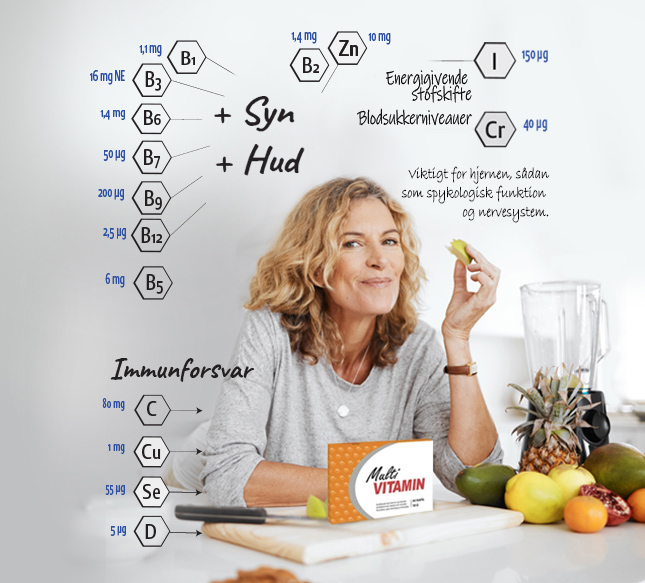 Multivitaminer giver kroppen vigtige vitaminer og mineraler, hjælper på træthed og er godt for immunforsvaret.